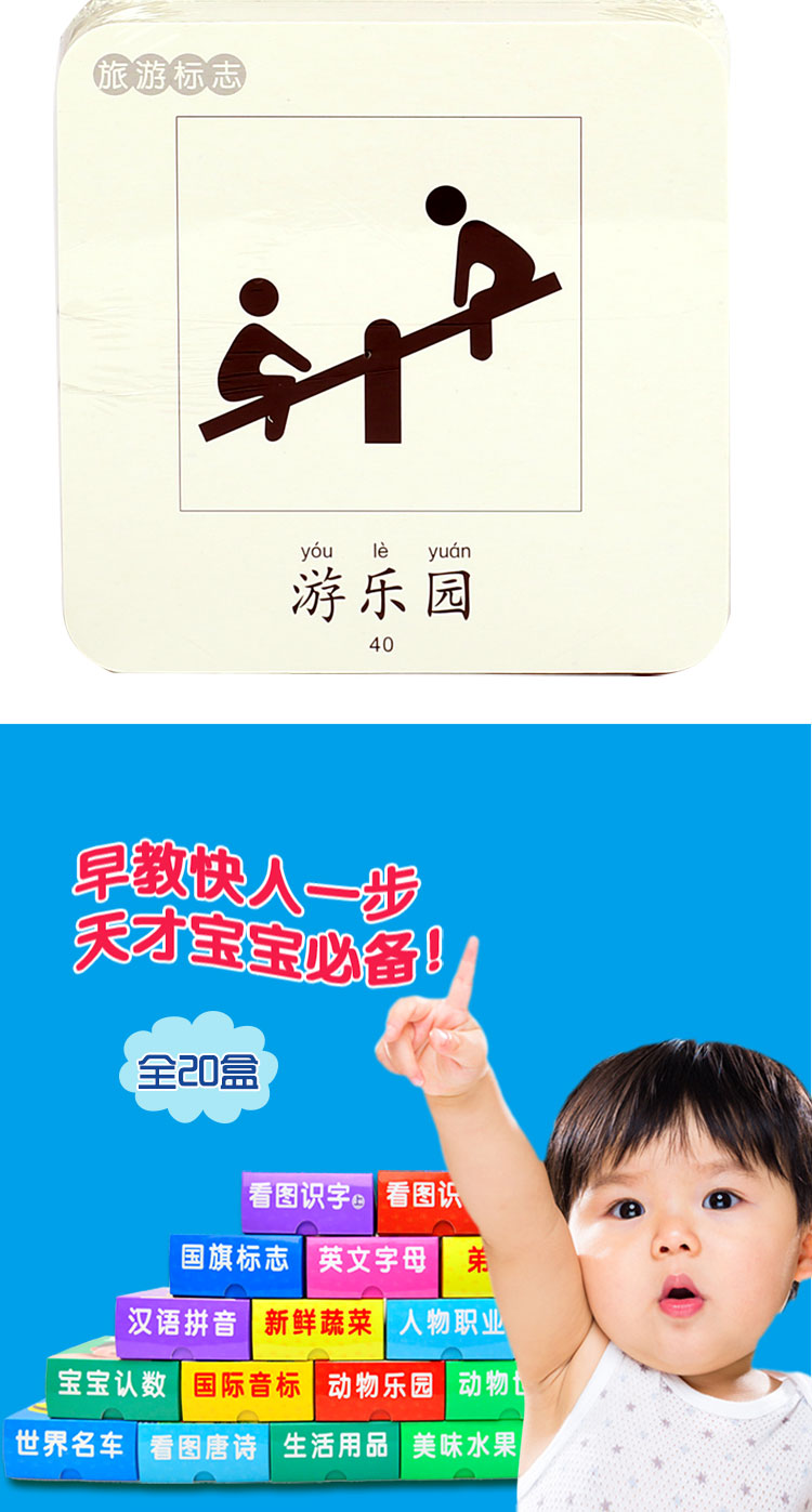 《撕不烂全卡》是一套内容丰富、编排合理的启蒙认知卡片。卡片采用白卡对裱、冲圆角的工艺,卡片厚,让宝宝在安全翻阅时真正实现小手撕不烂。卡片的内容丰富,实现了启蒙认知全覆盖,可以全面适应宝宝在不同阶段的学习需求。启蒙类:动物世界、动物乐园、交通工具、美味水果、新鲜蔬菜、生活用品等色彩鲜艳,图片清晰,可以刺激宝宝视觉发展。卡片中朗朗上口的儿歌,适合爸爸妈妈与宝宝一起阅读,增进亲子互动。认知类:宝宝认数、宝宝算术、看图识字、国际音标、汉语拼音等,按照小学新课标由易到难、由浅入深编排,爸爸妈妈可以带领宝宝一起学习这些基础知识,刺激宝宝大脑发育,帮助宝宝打下扎实的学习基础。更有三字经、弟子规和唐诗这些中华文明的经典作品,爸爸妈妈可以从小读给宝宝听,帮助宝宝培养良好的文化素养。
